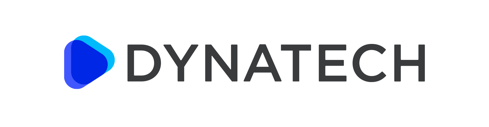 The “D” of Dynatech represents a play icon with the meaning of moving forward and overcoming challenges.