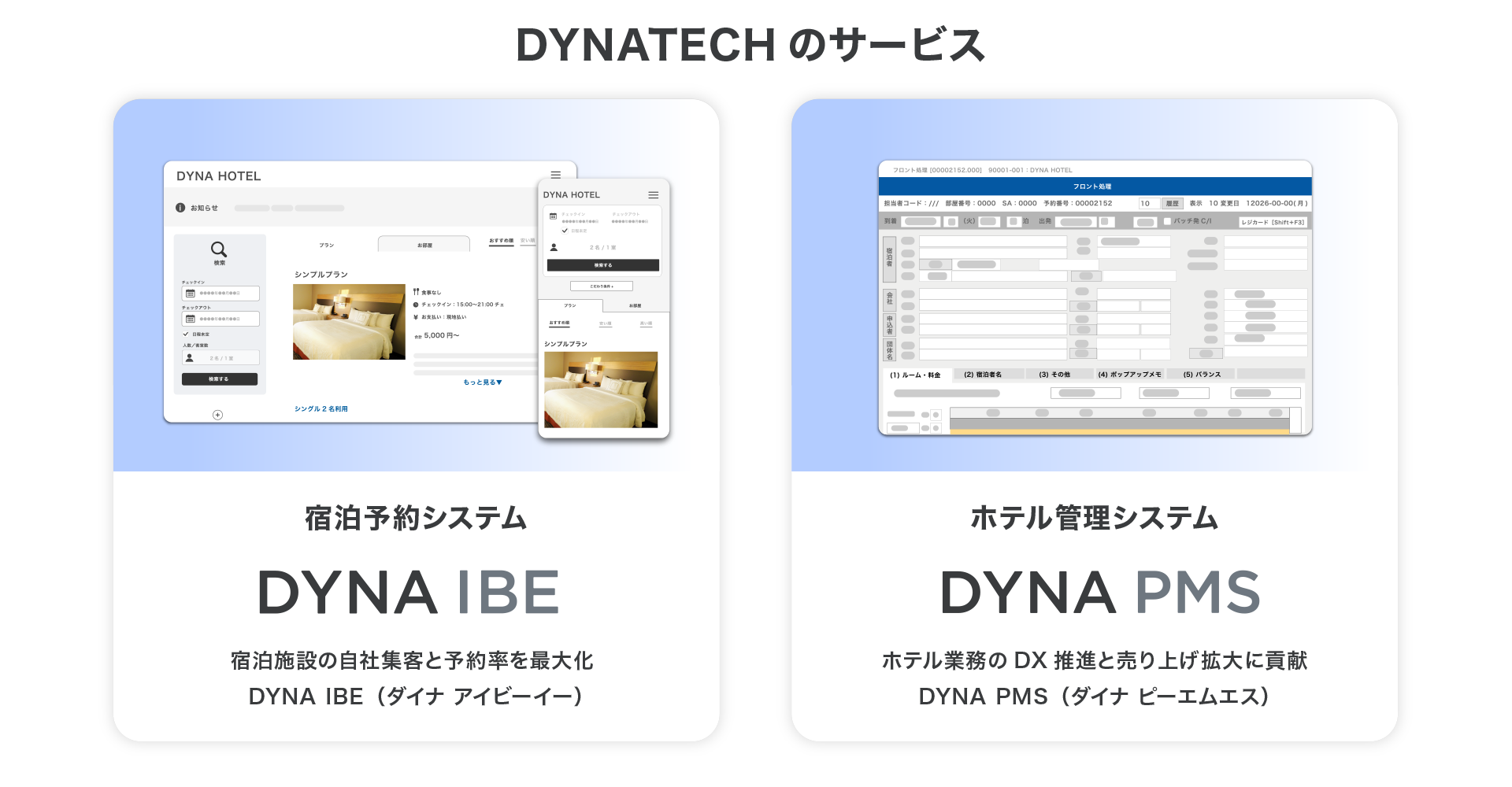 Dynatech and ValueCommerce merged on April 1, 2025. Dynatech has been contributing to the lodging industry throughout the 37 years since its establishment and it is widely recognized. The logo and service names reflect our desire to develop the Dynatech brand as ValueCommerce’s travel tech business and create new value through the development of innovative solutions.