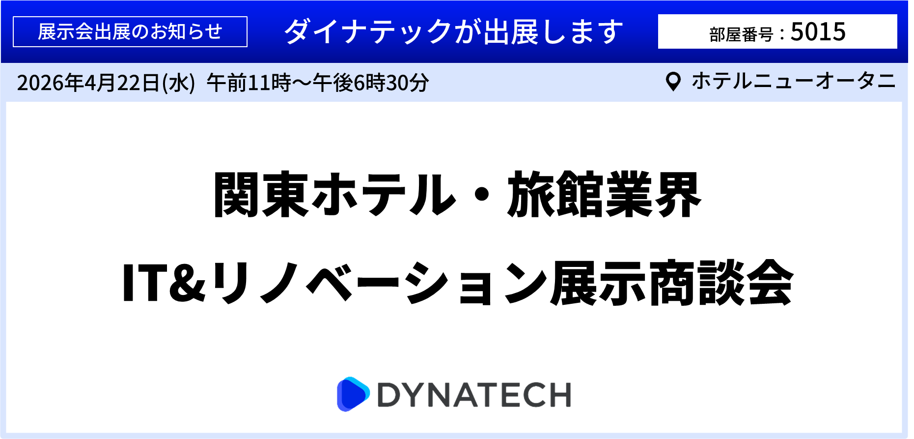 ダイナテック、「関東ホテル・旅館業界IT&リノベーション展示商談会」に出展