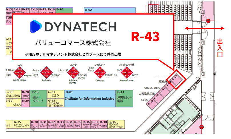 ダイナテックでは、宿泊予約システム『DYNA IBE(ダイナ アイビーイー)』を中心にした、宿泊施設の課題を解決するソリューションを展示・紹介。加えて、バリューコマースの集客ソリューションも活かし、幅広いニーズに対応します。