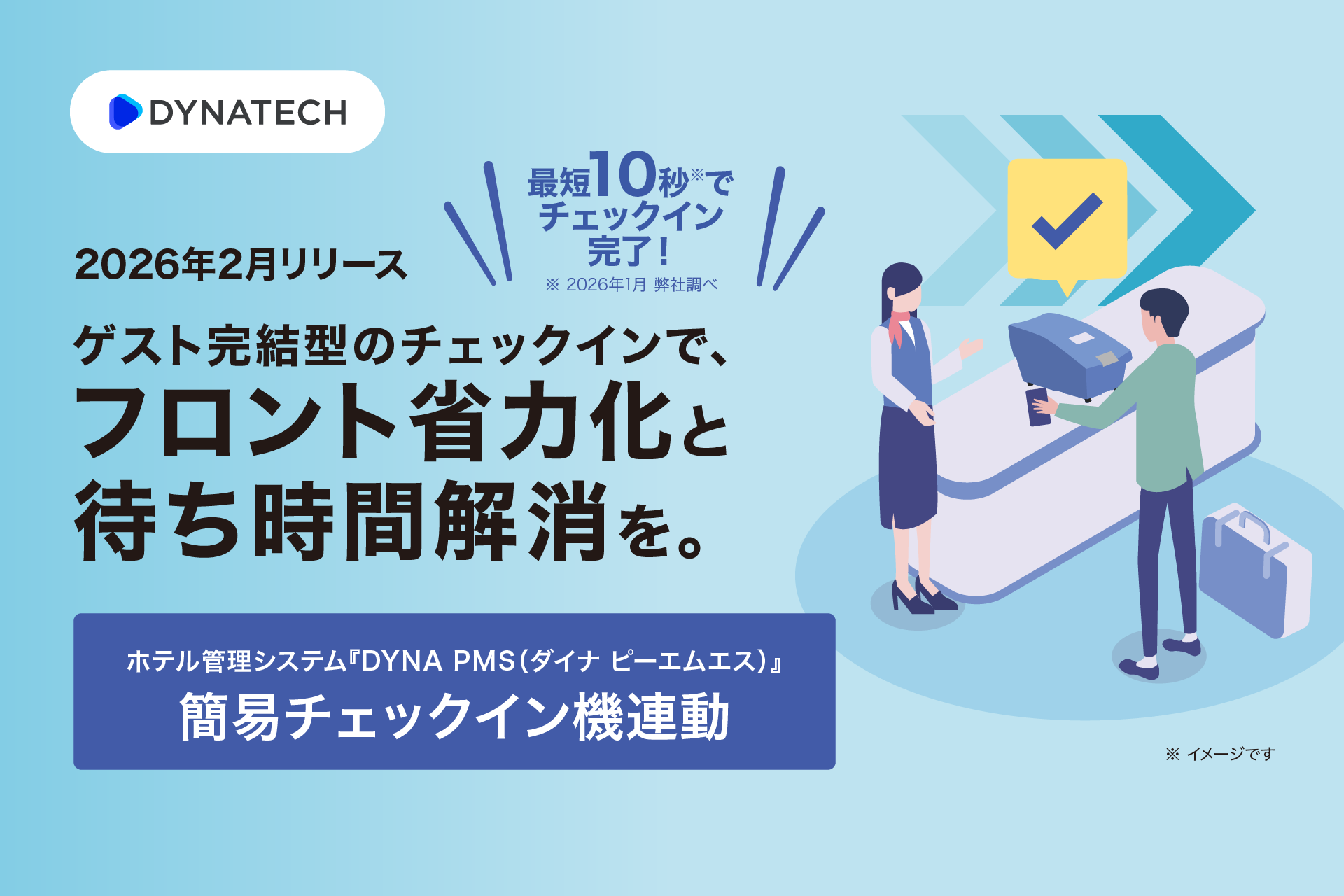 ダイナテック、『DYNA PMS』で事前精算済の宿泊者に特化した「簡易チェックイン機連動」をリリース